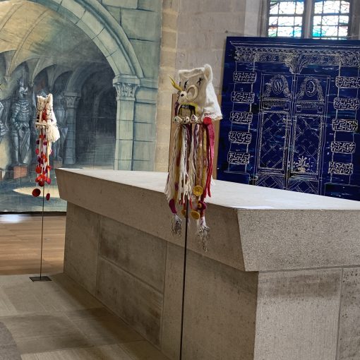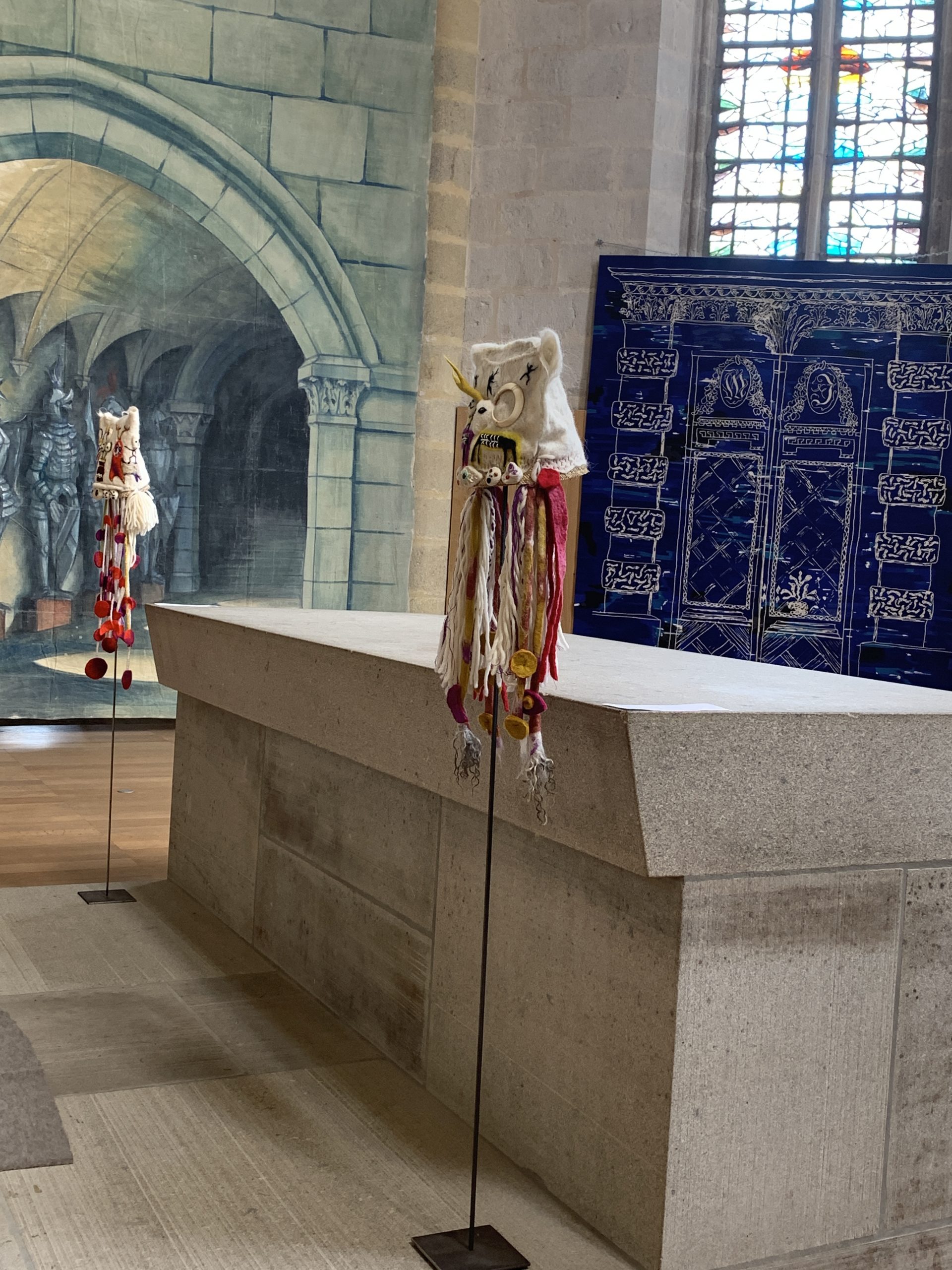 Trois de mes pièces (deux coiffes et un grand masque) ont été sélectionnés pour faire partie de l’exposition « Feutre de scène » qui sera présentée dans l’église Notre-Dame-du-Château à Felletin du 15 avril au 25 juin.