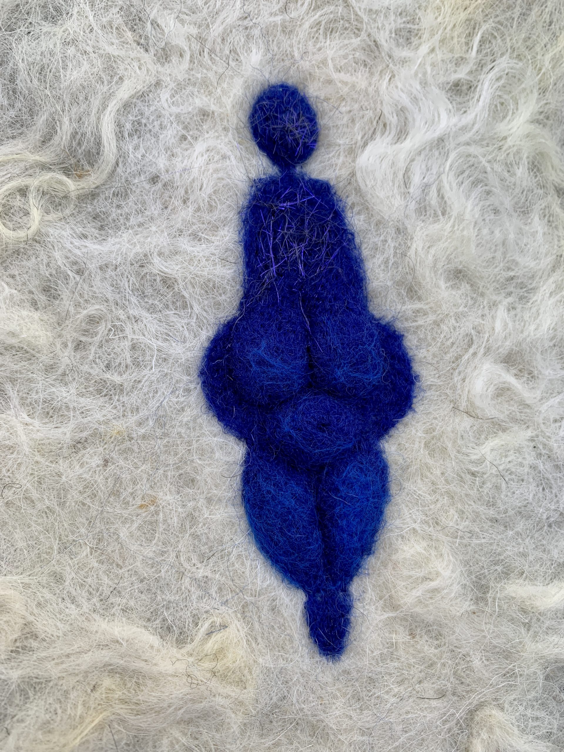 Vénus bleue feutrée à l’aiguille sur pièce de feutre feutrée à l’eau